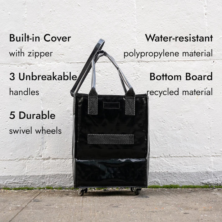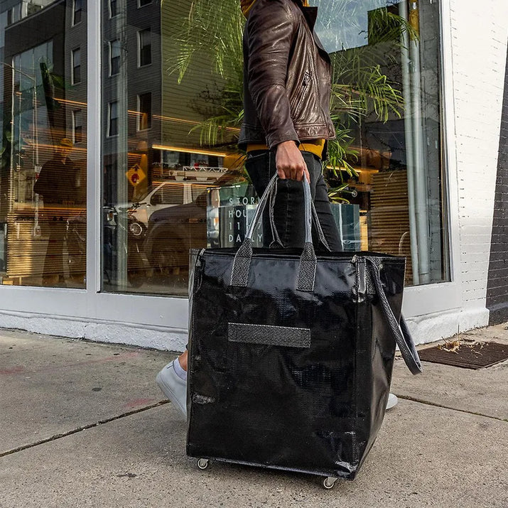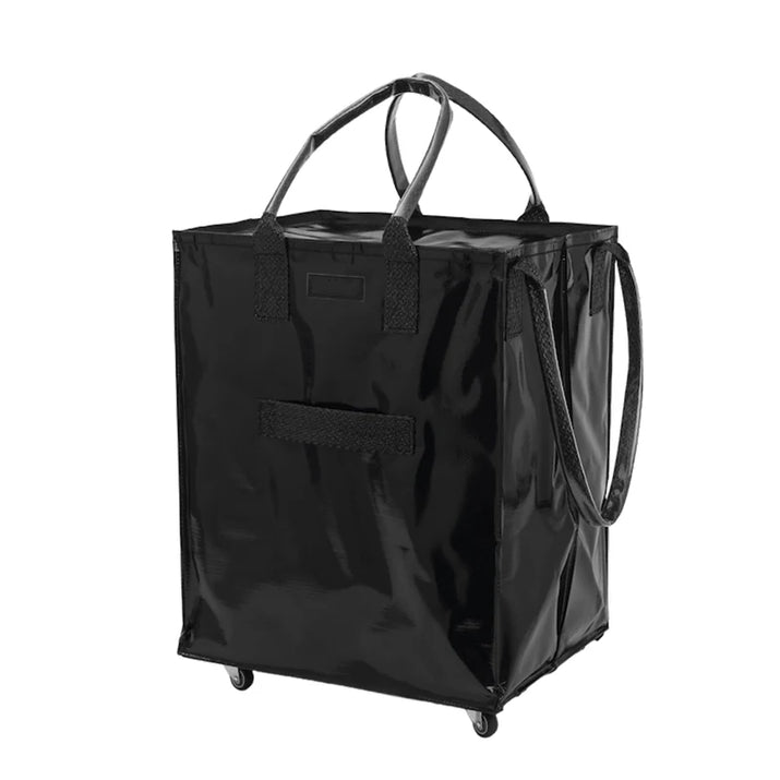 Unlike ordinary grocery bags, this carrier is designed for maximum convenience and durability. It can handle multiple bags effortlessly, has a reinforced base, and is equipped with 360° swivel wheels for easy maneuverability, making hauling a breeze.